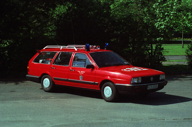 Fahrzeugtyp Typ:Einsatzleitwagen Fahrgestell:VWModell:PassatAufbau:–Baujahr:1985Zulassung:1994Indienststellung:1994Hubraum:1576 cm³Motorleistung:55 kW / 75 PSLeergewicht:–zul. Gesamtgewicht:–Geschwindigkeit:–Abmessungen (LxBxH):–Besatzung:5Funkrufname:Florian Wallenfels 10/1Kennzeichen:KC-2030 Bilder:Archiv Franz Behrschmidt