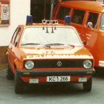 ELW (ca. 1982-1991) Typ:EinsatzleitwagenFahrgestell:VWModell:Golf 1Aufbau:–Baujahr:–Zulassung:–Indienststellung:–Hubraum:–Motorleistung:–Leergewicht:–zul. Gesamtgewicht:–Geschwindigkeit:–Abmessungen (LxBxH):–Besatzung:5Funkrufname:Florian Wallenfels 10/1Kennzeichen:KC-266 Bilder:Archiv Franz Behrschmidt