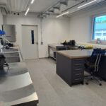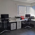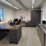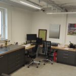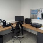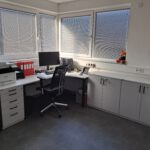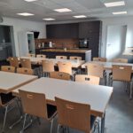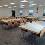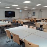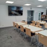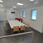 Angrenzend an den Aufenthaltsraum ist der Schulungsraum. Er bietet genug Platz für diverse Aus-, Weiterbildungen sowie größere Besprechungen. Auch hier ist ein großer Monitor mit WLAN-Anbindung vorhanden.