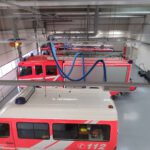 Die Fahrzeughalle bietet vier Stellplätze und eine Multifunktionshalle. Für jeden Stellplatz ist jeweils ein Anschluss für Druckluft, Batterieerhaltung, sowie eine Abgasabsaugung mit beweglichen Anschlüssen, die sich beim Losfahren automatisch lösen, vorhanden. Im Eingangsbereich der Halle befindet sich ein Alarmmonitor. Er bietet eine Übersicht aller relevanten Daten (alarmierte Fahrzeuge, Einsatzort, Wetterwarnungen und Termine).