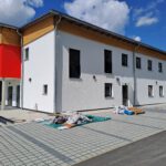 Im EG findet sich neben der Fahrzeughalle mit vier Stellplätzen auch eine Multifunktionshalle. Direkt im Anschluss an die Fahrzeughalle sind dann die Werkstätten für Gerätewarte und Atemschutz sowie ein Lager untergebracht. Ein außenliegender überdachter Waschplatz schließt sich der Multifunktionshalle an. Weiterhin befinden sich im EG auch die separaten Umkleideräume, Duschen und WCs für Damen und Herren. Im Obergeschoss befindet sich das Büro, ein Nachbesprechungs- / Bereitschaftsraum, ein Schulungsraum, ein separater Raum für die Jugendfeuerwehr, die Kleiderkammer, ein Kompressorraum sowie Heizung und Pelletlager. Auch Toiletten sind im OG selbstverständlich vorhanden.