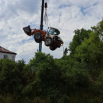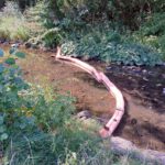 Wir brachten in die Wilde Rodach drei Ölsperren ein und verhinderten damit eine Ausbreitung der ausgetretenen Betriebsstoffe flussabwärts. Des Weiteren dichteten wir die Austrittsstellen direkt an der Maschine ab.