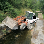 Im Bereich der Floßrutsche „Am Allerswald 5 / Ailastraße“ verunglückte ein Radlader. Bei dem Fahrzeug löste sich vermutlich die Handbremse, dadurch rollte die Maschine den Hang hinunter und landete in einer Floßrutsche in der Wilden Rodach.
