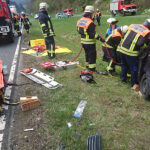 Beim Überholen kollidierte ein Pkw mit einem entgegen kommenden Pkw. Der Unfallverursacher wurde leicht verletzt und konnte selber das Fahrzeug verlassen. Im anderen Fahrzeug war eine Person, die im Fußbereich eingeklemmt war. Alarmiert waren anfänglich (Alarmzeit: 14.55 Uhr) die Feuerwehren aus Zeyern, Marktrodach und Steinwiesen. Die FF Wallenfels wurde nachalarmiert, da sie örtlich zuständig war. In Absprache mit dem Notarzt wurde durch die FF Steinwiesen ein Zugang zum Patienten an der Fahrerseite geschaffen. Die FF Wallenfels öffnete mit dem Spreitzer den Kofferraum und durchschnitt die Säulen gemeinsam mit der FF Steinwiesen, damit das Dach abgenommen wurde. Die FF Marktrodach kümmerte sich um das Glasmanagement im Frontbereich. Nach der Personenbefreiung wurden die Absperrmaßnahmen von der FF Wallenfels übernommen. Bis zum Eintreffen der Abschlepper war die B 173 nur noch halbseitig gesperrt. Einsatzende für die FF Wallenfels war um 17.05 Uhr. |